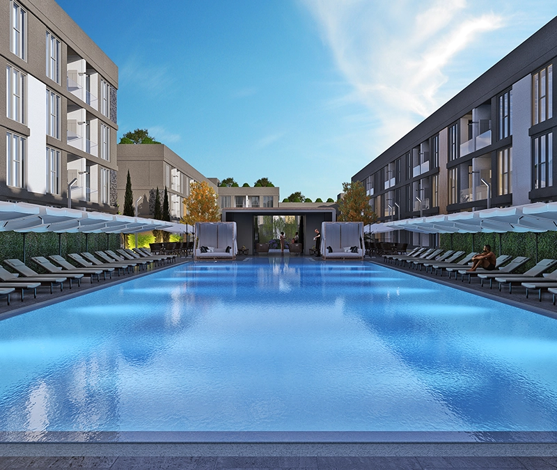 LOUNGE - 340 DAİRE Yeni nesil yaşam anlayışını modern yatay mimari ile birleştiren Premium Lounge; geniş rekreasyon alanları, yüzme havuzu, cafe ve spor salonları ile tüm beklentilerinizi karşılamak üzere tasarlandı.